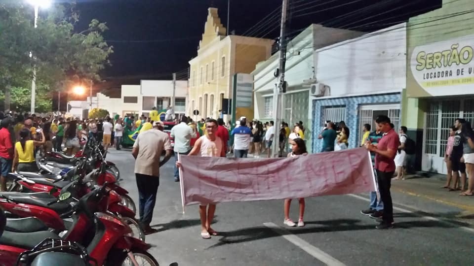 Outra manifestação, esta denominada “Vem Pra Rua Teixeira PB”, aconteceu durante a tarde, na Praça Cassiano Rodrigues, no município de Teixeira, também na Região Metropolitana de Patos.